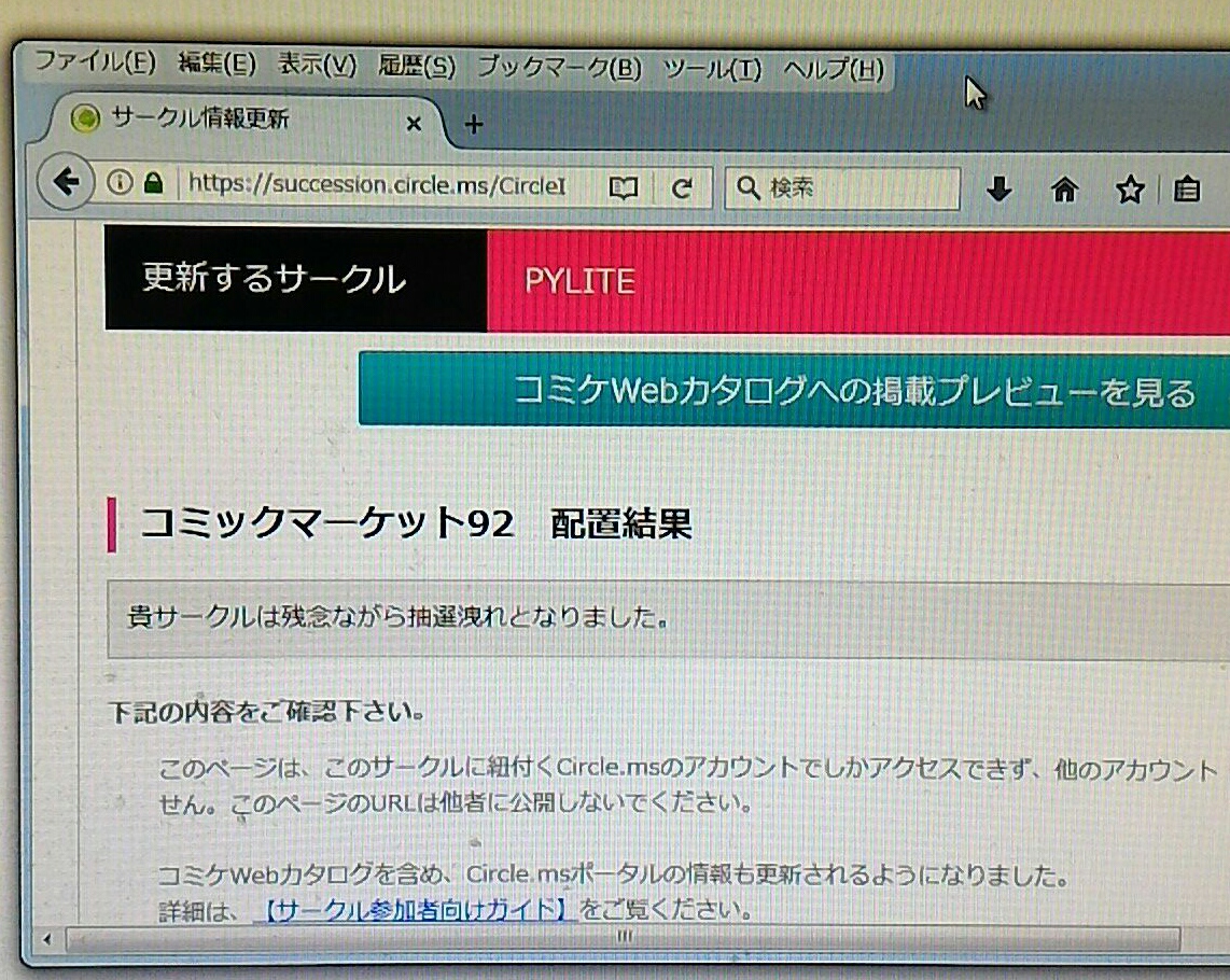 コミケ92配置結果?貴サークルは残念ながら抽選漏れとなりました